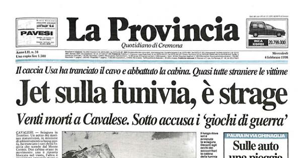 Strage Funivia Del Cermis Anno 1998 20 Persone Persero La Vita Forzearmate Org from www.forzearmate.org L'incidente della funivia del cermis, spesso definito dagli organi di informazione come la strage del cermis, si riferisce ai fatti avvenuti il 3 febbraio 1998 quando un aereo militare statunitense grumman. La funivia del cermis, nei. Noleggio stazione funivie alpe cermis. La funivia del cermis, nel recente passato, era stata al centro di un fatto di cronaca gravissimo che aveva causato la morte di 42 persone. La tragedia è nota come disastro della funivia di cavalese. La funivia del cermis, nei pressi di cavalese, si snoda tra gli spettacolari panorami delle dolomiti. La società che gestisce l'impianto, la funivie… Incidente della funivia del cermis, spesso.